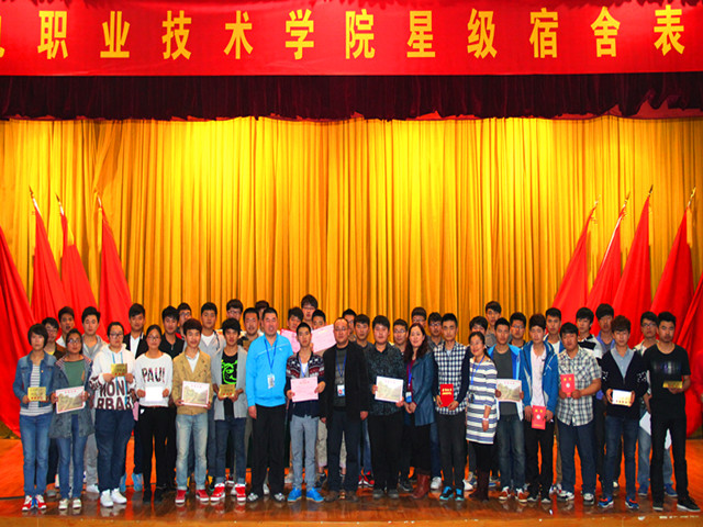我院学生积极参与宿舍文明建设,在创建安全、和谐、文明的宿舍环境,推动宿舍文化活动的开展中做出了积极贡献。学工处大学生生活服务与管理中心依据开元【机电学院学(2014)15号】文件精神要求和《学生手册》相关规定在学生宿舍开展了“星级文明宿舍”的活动,经过学生宿舍申报、各系部 推荐、大学生生活与管理中心将申报参评的223间宿舍(占学使用宿舍的41%),依据宿管老师每日检查分值、系部学生会抽查分值、学生宿管会每周组织抽查 分值和中心组织检查的分值进行综合评选,评出星级宿舍的等级,最终经学工处审核,5栋102等26间宿舍、1栋402等36宿舍、3栋116等45间宿舍 分别被评为“五星级、四星级、三星级”文明宿舍,同时评出潘代斌等12名在日常工作中积极配合中心组织各项卫生检查、带领学生完成中心各项活动、表现突出的宿舍长,刘显强等6名层长,刘尊志、孙修鑫等2名楼长。