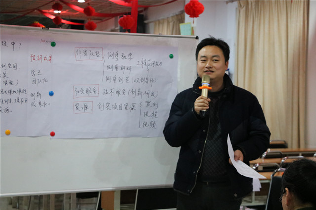 观察员刁爱军副院长重点对“创客式课改”议题讨论情况进行点评,他指出一是“创客教育”作为一种新的教育模式可以培养学生的批判性思维。二是我院创客教育人才培养方案明确定位“培养具有一定创新能力的技能型人才”,需要各专业负责人认真思考本专业的“具有一定的创新能力的人才标准是什么?”进一步完善人才培养质保体系中的“标准链”。三是创客教育实施要关注“五个融合和五个关系”。四是创客式课改课程是一种课程建设的一种模式,是课程改革的一种方式;创客项目是由学生提出来的,是学生自己要做的,更有利于提高学生的学习积极性。学院鼓励教师多开发围绕专业课程的创客项目课程,由简单到复杂的创客项目课程,根据学生不同学情重新构建课程,同时要重视“留白教育”,专业人才培养要留白,课程教学要留白,留空给学生填空,为学生提供发现问题,解决问题和训练创新思维的空间与环境。