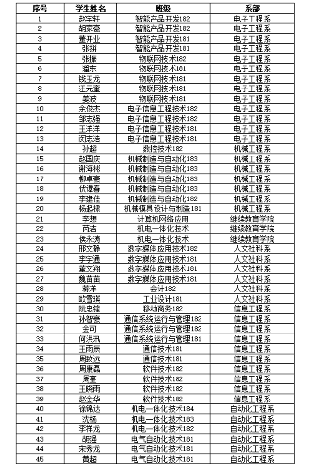 南京机电技术职业学院第二期“双创实验班”学员名单