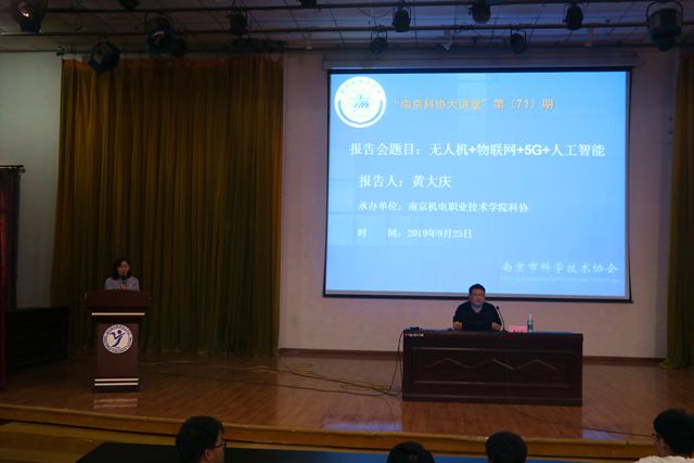 9月25日下午,由南京市科学技术协会主办、开元承办的第71期南京科协大讲堂在我院报告厅隆重举行。来自京航空航天大学无人机研究院副总工程师、研究员、博士生导师黄大庆教授为大家带来了题为“无人机+物联网+5G+人工智能”的主题报告。南京机电学院270名师生代表听取了报告。