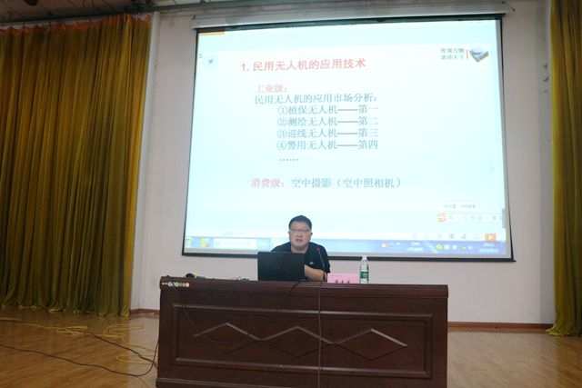 黄教授从专业的角度为师生讲解了民用无人机的主要特点和用途,民用无人机的应用技术,物联网的应用技术,5G通信的应用技术,人工智能的应用技术,国内外无人机技术的发展历史和主要历程,展示和分析了 当今无人机系统的技术现状。