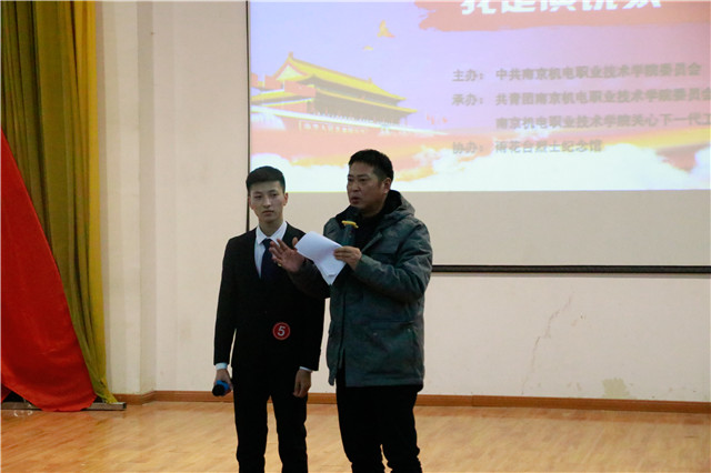 在学院党委的领导下,关心下一代工作委员会的关爱下,雨花台烈士纪念馆的大力支持下,本次大赛由学院团委发起,历时一个月,通过各班级、系部层层选拔,最终产生十名选手晋级决赛。决赛分为情景剧表演和主题演讲两个部分,在情景剧表演环节中,决赛选手分为两组,生动地演绎了雨花英烈故事和现代城市英雄故事。情景剧《雨花魂不灭》从雨花英烈精神产生的深远时代背景谈起,着重讲述了雨花英烈的崇高理想信念、高尚道德情操、为民牺牲的大无畏精神以及雨花英烈精神的当代价值,向在场师生展示了“雨花英烈精神”不是书写在纸上的美丽词藻,而是烈士们用生命铸就的民族精神,也蕴含着普世的实践价值。情景剧《城市英雄》讲述了以环卫工人、公交车司机、交通警察、人民教师和医护人员为代表的不同行业的城市英雄,通过情景剧表演的形式,关注城市建设,向城市耕耘者表达敬意与感激,致敬平凡岗位的英雄。在主题演讲环节中,选手们从“雨花英烈精神”、“我和我的祖国”、“发扬五四精神,勇担新时代重任”、“致敬最可爱的人”、“智能制造新未来”五个主题,传承红色基因、精神力量和彰显的初心,激励和引导同学们树立崇高的理想,用奉献的情怀,顽强的意志和高尚的情操唱响“振兴中华”的青春壮歌。同学们的演讲声情并茂、铿锵动人,故事中有坚守、智慧、期待、奉献。一句句绘声绘色地讲述,一个个引人入胜的故事,也许平凡,却很感人;也许质朴,却很生动;也许简单,却很坚定。
