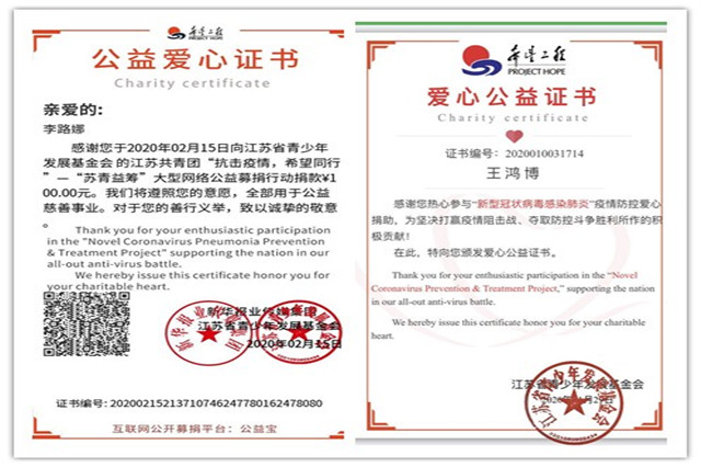 李路娜老师母子捐款证书