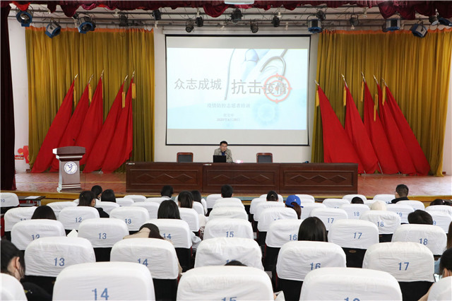 接下来,学生工作处处长张宝中就疫情目前的发展形势、传播途径及报到流程和开学要求给大家进行解析,同时提出要求:全体志愿者在疫情防控工作关键时刻,要高度重视,清楚认识到疫情防控工作的严峻性,坚守责任,坚定信心,严要求、严落实;要加大巡查和宣传力度,有针对性的开展疫情防控工作;要突出重点、科学防控、精准施策,坚决配合党和政府打赢新型冠状病毒感染的肺炎疫情防控阻击战!