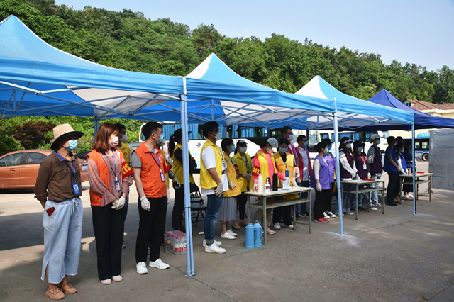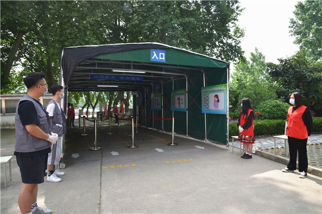 被新冠肺炎疫情影响后的春季开学不同于以往任何时候,全校上下都严阵以待,确保各项返校准备工作有序到位。五月的沧波门校区,暮春初夏,绿荫渐浓。16日100多名南京地区学生志愿者刚刚放下行李,便在老师的带领下奔赴各个岗位参加培训和返校准备工作。17-19日,他们随着我校教师志愿服务队一道,奋战在返校服务第一线。90路车站停靠点是学生返校接待第一站,各系老师们在这里登记信息、帮助学生托运行李到学院大门。学校大门是学生返校的关键卡口,经过一再的演练和培训,确保测温准确稳定。返校学生间隔一米有序进入,展示苏康码、核验身份信息。