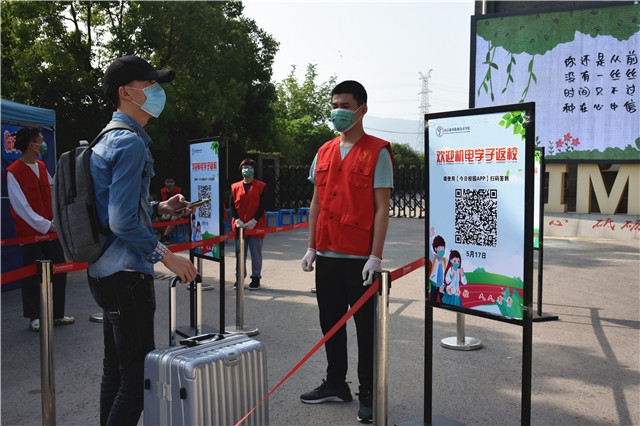 机电学子分批错峰有序返校,是学校师生共同努力的结果。学校以党员先锋队为骨干的志愿者服务队,全力参与本次学生返校复课保障工作。520日到6月3日之间为返校复课观察期,各部门教职工将继续坚守在疫情防控工作的各个岗位,全力保障学生的健康安全