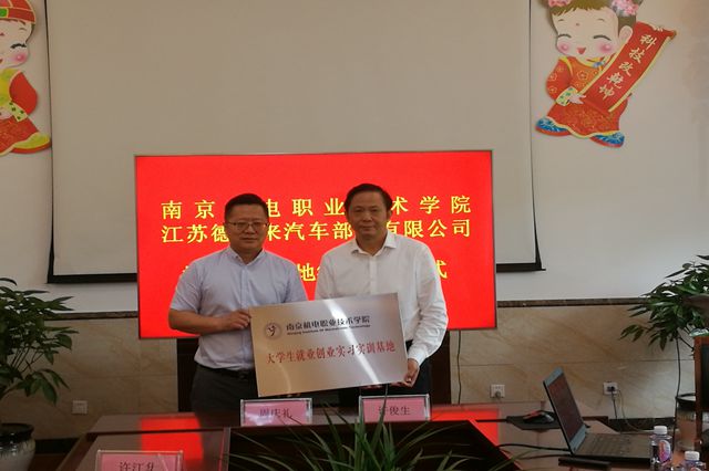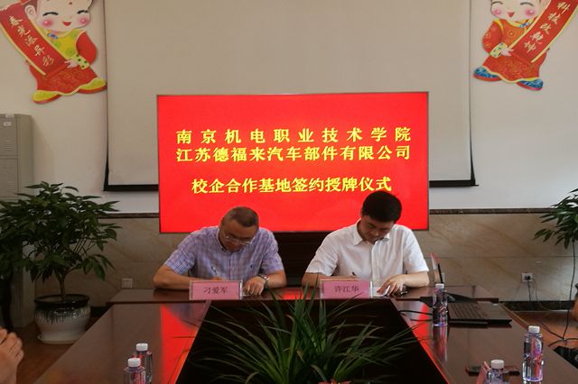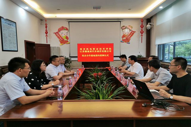 随后,学院一行5人在泰兴市高新技术开发区管委会副主任邱明波的带领下分别前往苏德福来汽车部件有限公司、江苏佳佩环保机械设备有限公司进行校企合作专题对接活动。学院领导与企业领导就人才培养、项目合作等校企合作事宜进行了深入的交流,初步达成合作意向。学院分别与两家公司签订《就业创业实习实践基地建设协议》,并向两家公司授予“开元大学生就业创业实习实训基地”铜牌。