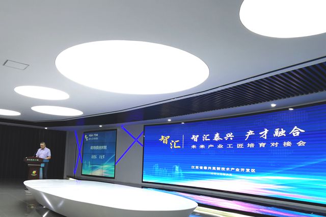 6月23日上午, “智汇泰兴 产才融合”未来产业工匠培育对接会(泰兴高新区专场)在泰兴市高新经济开发区人才科技广场举行。学院党委书记、周庆礼,党委委员、副院长刁爱军,科研及校企合作处处长李木香、学工处处长张宝中、机械工程系主任佟静参加本次对接会活动。活动由泰兴副市长、科技镇长团团长黄锁明主持。