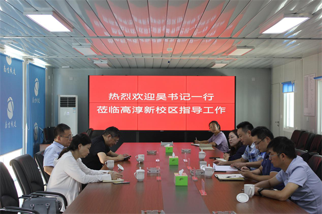 在高淳新校区项目现场,新工集团党委副书记、工会主席吴启宁,人力资源部部长黄静代表集团慰问项目部一线工作人员,带来了集团的关心和慰问品。学院党委委员、副院长孔德丽,党委委员、工会主席姜振宇及值班人员参与接待并向一行领导介绍了新校区目前的建设情况及近期迁建相关工作安排。
