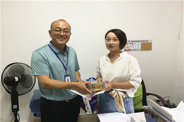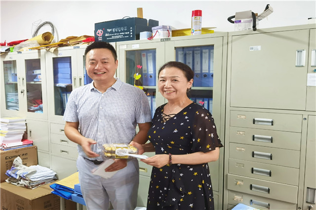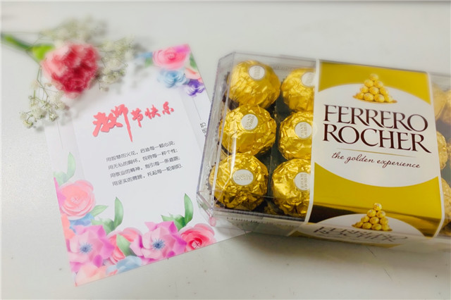 随后,学院领导分赴各系部及职能部门,为辛勤的园丁们送去暖暖的问候和学院的心意。一张小小的贺卡,一盒沉甸甸的巧克力,这是机电教师节特有的礼物。每一年的教师节,院领导都会亲自把这份心意送到每一位教职工手中。礼物虽轻,情深意重,从新进的年轻教师到工作多年的老教师,这份来自学院的心意让他们收获了满满的感动与惊喜。
