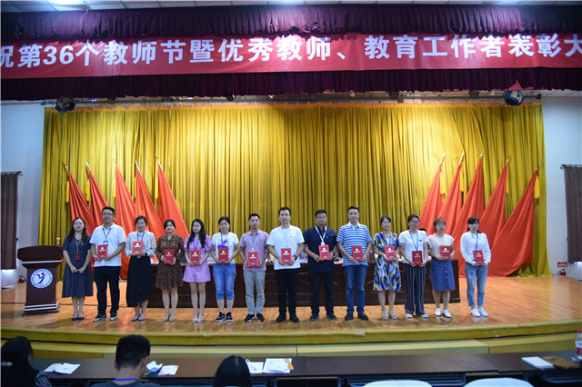 在大会正式开始之前,学院办公室安排了庆祝教师节抽奖活动,五个系的书记和学生代表上台为老师们送上了节日的祝福,并抽出了50名中奖人员,学院为每一位中奖人员精心准备了小礼物—书券。新闻中心制作了受表彰教职工的合集短片并向全院教职工献上教师节贺词。