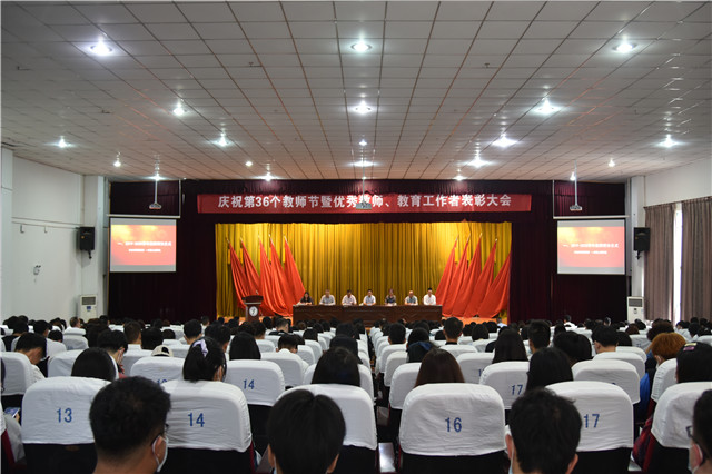 9月15日下午,学院在报告厅召开庆祝第三十六个教师节暨优秀教师、教育工作者表彰大会。全院教职工及各系学生代表参加会议,大会由党委委员、副院长刁爱军主持。