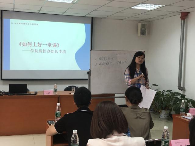 上午的第二场培训内容为“如何上好一堂课?”主讲人为学院质控办主任李清,她为培训的老师们带来了精彩的课堂教学指导分析,从授课对象,授课计划,授课内容等细节分析了教什么,怎么教。
