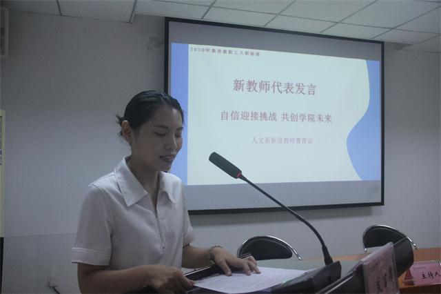 随后,所有新进教职工满怀激情宣读了教师誓言,以饱满的精神状态展现了自己的风采。紧接着,人文社科系新进教师曹青云作为新教师代表发言,发言中她感谢学院为新进教师提供的平台,同时也表达对自己加入南京机电这个大家庭的珍惜之情,她愿竭尽所能,以最饱满的热情、最坚韧的意志共创学院美好未来!