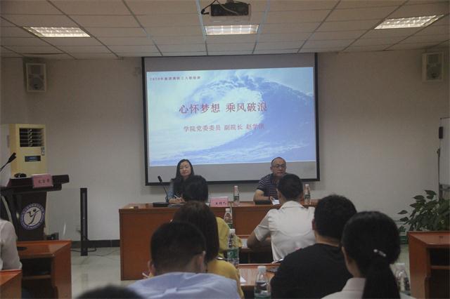 培训开班仪式由学院人事处处长夏玲玲主持,学院党委委员、副院长赵学洪为本次培训做了题为“心怀梦想 乘风破浪”的精彩致辞,致辞中他首先热烈欢迎新进教职工加入学院,接着深情回顾了学校的发展历史,随后阐释了学院的创新发展理念,最后对新进教职工提出了新的要求。要求新进教职工对学院要有主人翁意识,勇于承担,融入学院“有爱、有趣、有情怀”的校园氛围;对工作要有敬业的精神,精于研究,加入各自专属的创新团队,不断拓宽知识视野;对教学要有严谨的态度,乐于准备,投入百分百的工作精力,努力成为综合型教师;对学生要有人文的关怀,甘于奉献,注入暖心的一泓温泉,收获师生间特别的幸福;对自己要有严格的要求,勤于学习,踏入书山学海,锤炼道德修养,体现教师价值。