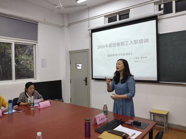 17日下午,学院人事处处长夏玲玲作了“教师成长与发展”的专题讲座,以有趣的拓展活动“蒙眼听指令”导入,让新进教职工了解沟通的重要性,以“教育”二字的理解,让大家感受到教和育的区别与联系,对教师的发展与成长起到良好的推动作用。学院人事处劳资干事徐心、师资干事金娟分别为新进教职工讲解了人事、师资等制度。