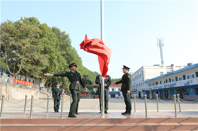 上午8时整,50名国旗班成员带着新中国成立71周年的使命感、荣誉感与骄傲感,以昂首挺拔的军姿、坚定的步伐、整齐划一的动作,护卫着鲜红的国旗迈向升旗台。随着一声“升国旗,奏唱国歌”,在全场师生的注目下,五星红旗冉冉升起,迎风飘扬,师生们深情地注视着高扬的五星红旗,用真挚之情表达对祖国最美好的祝福。