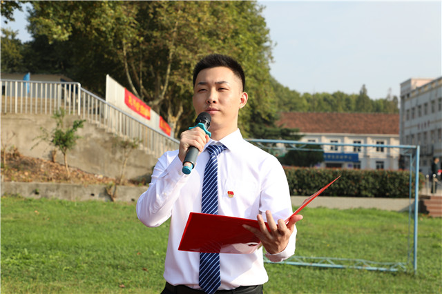 院学生会主席戚彬盛同学作国旗下的讲话。他对建国71周年和中秋佳节表示了祝福,鼓励同学们要秉承“知行合一,自强不息”的校训,勤于钻研,勇于开拓,书写祖国新的篇章。戚彬盛同学的话语掷地有声、铿锵有力,彰显着激情澎湃、热情高昂的斗志和信心,极大激发了同学们的爱国热情,使同学们更加深刻地认识到自己所肩负的使命。