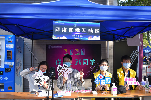 自动化工程系迎新区域今年特别热闹:来回穿梭的机器人小车,为新生上了“创客第一课”。同时系部还贴心的为每天不同时间报道的“小仙女 ”准备了鲜花。在网络直播互动区,学姐学长提前为新生耐心地讲解了报道流程。