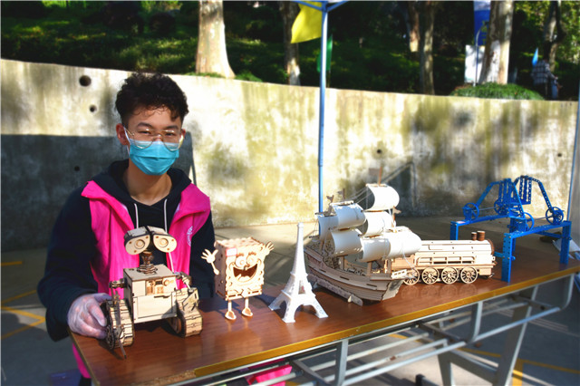 机械工程系的迎新现场,激光切割的创客作品吸引了不少新生的眼球,现场的志愿者在展示作品的同时也为同学们介绍了相关社团的内容。
