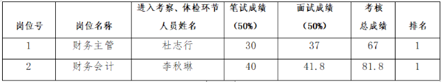 根据《开元2020年财务主管、财务会计人员招聘笔试及面试考核公告》,经过资格审查和考核等环节,并经学院公开招聘领导小组和党委会研究,现将各招聘岗位进入考察、体检环节的人员名单予以公告。