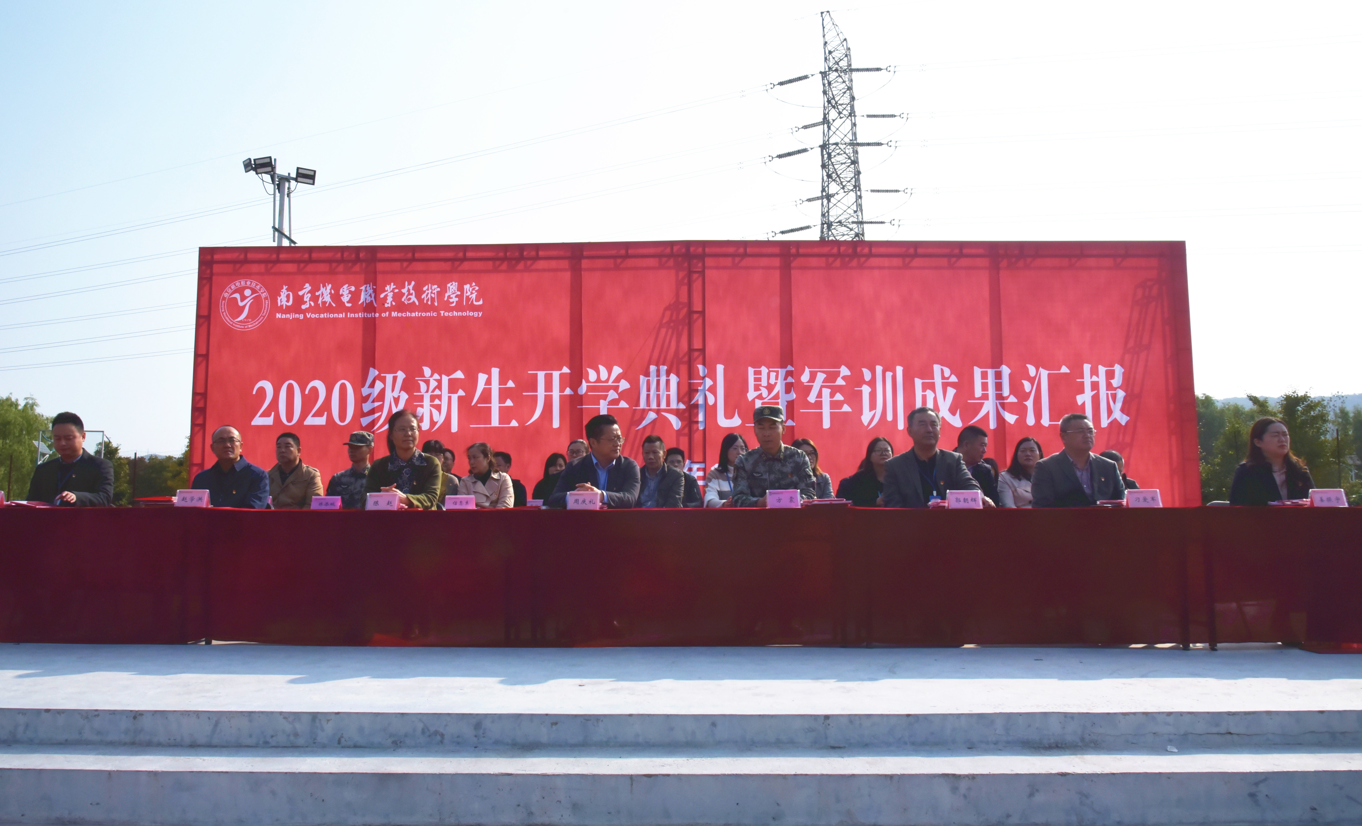 党委书记、院长周庆礼为2020级新生军训成果汇报大会暨开学典礼致辞。他代表全体师生员工对2529名新生的到来表示热烈的欢迎。他指出,在这个不平凡的年份里学院迎来了“生于非典,考于新冠”的莘莘学子,他希望带着这段特殊经历的学生们能够在南京机电获得新的认知和新的成长。周院长借学院使命中的自信二字送给大一新生。希望他们坚定精忠报国的信念;秉承自强不息的校训;发扬敢为人先的创新精神;不负韶华逐梦前行,和学院一起自信面向未来。