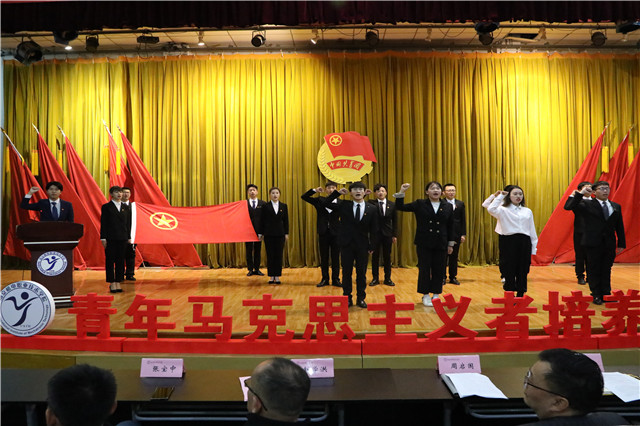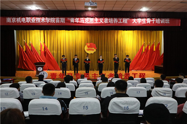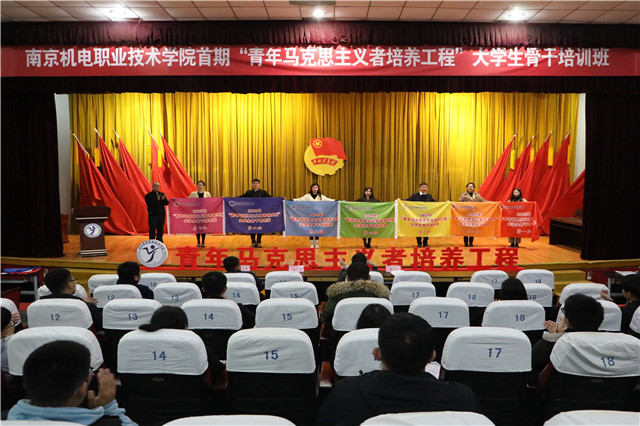 为深入贯彻落实习近平新时代中国特色社会主义思想和党的十九大精神以及《中长期青年发展规划(2016-2025)》《高校思想政治工作质量提升工程实施纲要》《“青年马克思主义者培养工程”实施纲要》等文件精神,推进“青年马克思主义者培养工程”的实施,改进创新面向广大青年学生的思想引领工作方式,着力培养新时代“爱国、励志、求真、力行”的社会主义合格建设者和可靠接班人,依照共青团“凝聚青年、服务大局、当好桥梁、从严治团”的工作格局,在广大青年中着力培养、造就一批经由马克思主义中国化的最新成果武装的年轻学生干部,使他们努力成为共产主义远大理想的坚定信仰者、社会和谐的积极促进者,南京机电职业技术学院首期“青年马克思主义者培养工程”大学生骨干培训班于2020年11月25日晚在报告厅顺利开班,并举行首场报告。开元党委委员、副院长赵学洪,纪委副书记、党委工作部部长周启国,学生工作处处长张宝中,党委工作部副部长张玥出席活动。学院各系部团总支书记、青马班各小组指导老师、学生干部骨干、青马班全体成员等80余人参加开班仪式。团委书记唐钰峤主持本次活动。