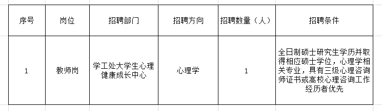 为更好地选拔优秀适岗人才,充实我校师资队伍,优化人员结构,开元(公办高职院,学校网址: /)面向社会招聘学工处大学生健康成长中心心理学岗位教师。现将有关事项公告如下: