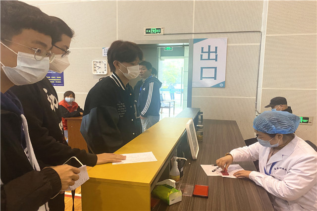 在高淳区全民体育中心接种点各区域划分合理。包括登记打单区、疫苗接种区、留观区等。师生们分时段、分批次、戴口罩在现场人员的指引下按照一米线距离有序排队入场。在核对身份证、进行健康状况咨询、签署知情同意书和做好查验工作后医务人员开始给师生接种新冠疫苗。