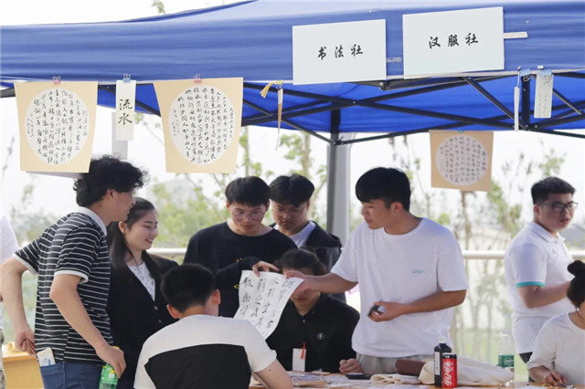 党委书记、院长周庆礼宣布社团巡礼节开幕。本届社团巡礼节在原有社团展示的基础上,延续虚拟货币的流通,打造虚拟货币促进社团与社团之间的互动。全校师生可以在社团联合会设立的虚拟货币兑换处进行抽奖兑换,随后在不同的社团展位,进行互动,赚取或消费虚拟货币。此次摊位展示共划分了5个区域,主要分布在星梦馆前和篮球场中,文体类社团的聚集地命名为燃烧我的卡路里;文艺类社团聚集地命名为瑾蔓云裳绣芳华;娱乐类社团聚集地命名为悠悠绕指琴瑟鸣;科创类社团聚集地命名为创新、实践、分享、成长;思政类社团聚集地命名为学党史、强信念、跟党走。同学们拿着活动卡片参与每个区域的社团活动,会有社团联合会工作人员进行盖章,满5个区域之后,可以去兑奖处领取小礼品。此举,不仅激发了师生的社团活动参与率,而且促进了社团之前的交流,现场一派热火朝天的景象。