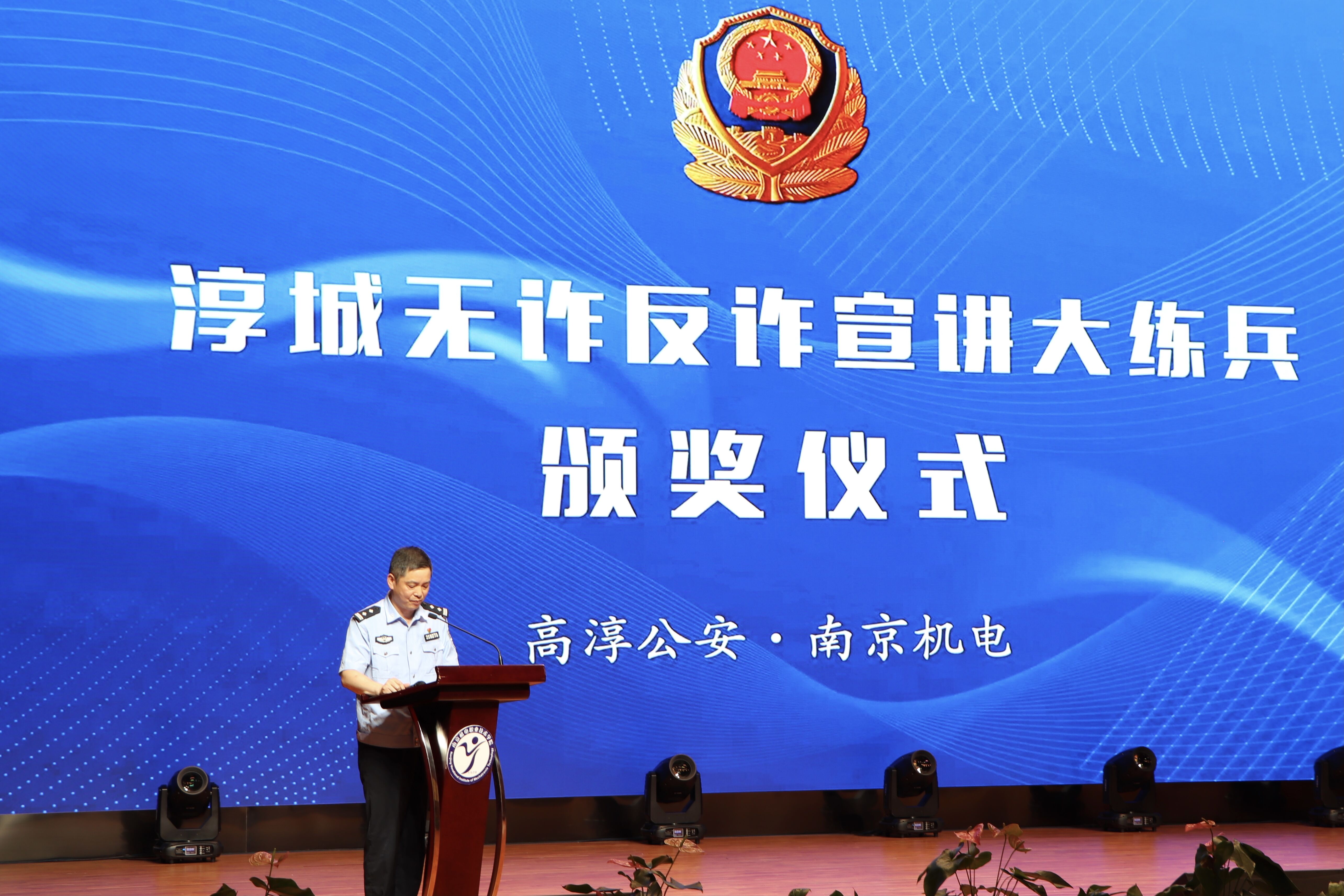 6月17日下午,我校与高淳公安联合开展的“淳城反诈宣讲大练兵”活动圆满收官。高淳区副区长、市公安局高淳分局党委书记、局长纪圣智,高淳分局党委委员、副局长史先英,学校党委委员、副院长赵学洪,学工处处长张宝中,高淳公安各所队、反诈中心分管领导及民警代表,各系党支部书记、反诈宣讲团志愿者小分队成员和学生代表等300余人参加颁奖仪式。仪式由高淳区合成大队大队长、反诈中心主任杨蓉主持。