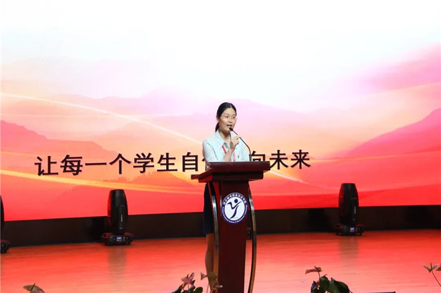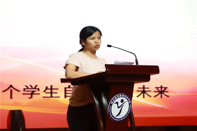 辅导员代表吴瑶在典礼上向全体毕业生表达了美好的祝愿,祝贺同学们顺利实现角色转换,期待同学们在实践中锻炼成长,坚持青春的梦想。
