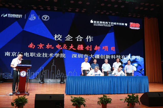 开幕式上省科协二级巡视员、学会部部长李政,南京市教育局副局长潘东标,高淳区委常委、宣传部部长、统战部部长李晓斌,市科协党组成员、副主席顾元刚发表讲话。李政部长代表省科协对论坛在高淳召开表示热烈的祝贺,并指出习近平总书记对神舟十二号宇航员的关心给我们航天爱好者很大鼓舞。潘东标副局长对南京机电学院组建“航天卫星载荷研制班”及“航天遥感技术工程师联合培养班”,成立“王曙群航天空间机构装配大国工匠工作站”,取得的良好成效表示肯定。李晓斌部长希望高淳愿秉承科技创新共同体的理念,与来自全国、乃至全球各地的专家学者、企业家一道,在危机中育新机、于变局中开新局,共同演绎科技创新的时代交响,携手开创高淳繁荣发展的美好明天。顾元刚副主席提出未来会发展以创新为主要引领和支撑的现代化经济体系和高质量发展模式,为广大科技工作者提供了贡献才智的广阔空间,为广大科技企业提供发展的新沃土。南京高等职业教育创新创业园管委会主任孔桂红女士对南京高职园进行了推介,国际慢城党工委委员、投资促进部部长汪春荣先生高淳区通航产业园进行了推介。会上还举行了签约仪式,签订了南京传媒学院高淳区校地合作项目和南京机电&大疆创新校企合作项目。开元未来将与深圳大疆创新公司共同致力打造航空航天特色示范校,共同培养无人飞行器领域专业技术人才。