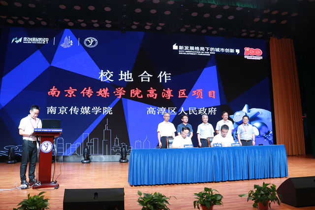 开幕式上省科协二级巡视员、学会部部长李政,南京市教育局副局长潘东标,高淳区委常委、宣传部部长、统战部部长李晓斌,市科协党组成员、副主席顾元刚发表讲话。李政部长代表省科协对论坛在高淳召开表示热烈的祝贺,并指出习近平总书记对神舟十二号宇航员的关心给我们航天爱好者很大鼓舞。潘东标副局长对南京机电学院组建“航天卫星载荷研制班”及“航天遥感技术工程师联合培养班”,成立“王曙群航天空间机构装配大国工匠工作站”,取得的良好成效表示肯定。李晓斌部长希望高淳愿秉承科技创新共同体的理念,与来自全国、乃至全球各地的专家学者、企业家一道,在危机中育新机、于变局中开新局,共同演绎科技创新的时代交响,携手开创高淳繁荣发展的美好明天。顾元刚副主席提出未来会发展以创新为主要引领和支撑的现代化经济体系和高质量发展模式,为广大科技工作者提供了贡献才智的广阔空间,为广大科技企业提供发展的新沃土。南京高等职业教育创新创业园管委会主任孔桂红女士对南京高职园进行了推介,国际慢城党工委委员、投资促进部部长汪春荣先生高淳区通航产业园进行了推介。会上还举行了签约仪式,签订了南京传媒学院高淳区校地合作项目和南京机电&大疆创新校企合作项目。开元未来将与深圳大疆创新公司共同致力打造航空航天特色示范校,共同培养无人飞行器领域专业技术人才。