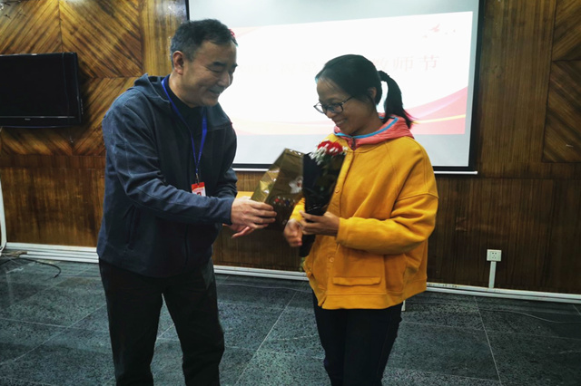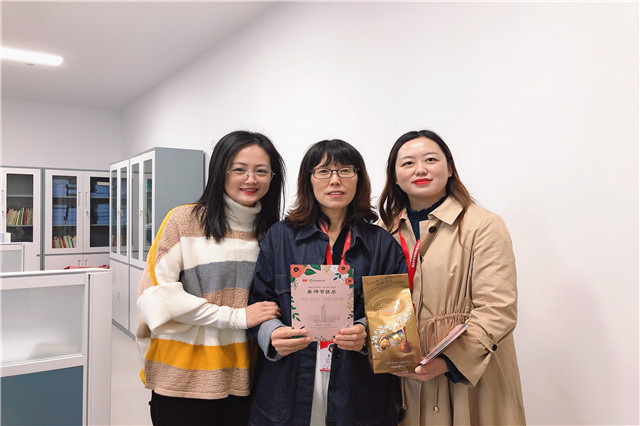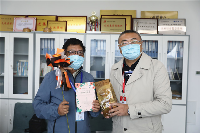 随后,校领导分赴各系部及职能部门,为辛勤的园丁们送去暖暖的问候和学院的心意。一张小小的贺卡,一盒甜甜的巧克力,这是机电教师节特有的礼物。每一年的教师节,校领导都会亲自把这份心意送到每一位教职工手中。礼物虽轻,情深意重,从新进的年轻教师到工作多年的老教师,这份来自学校的心意让他们收获了满满的感动与惊喜。