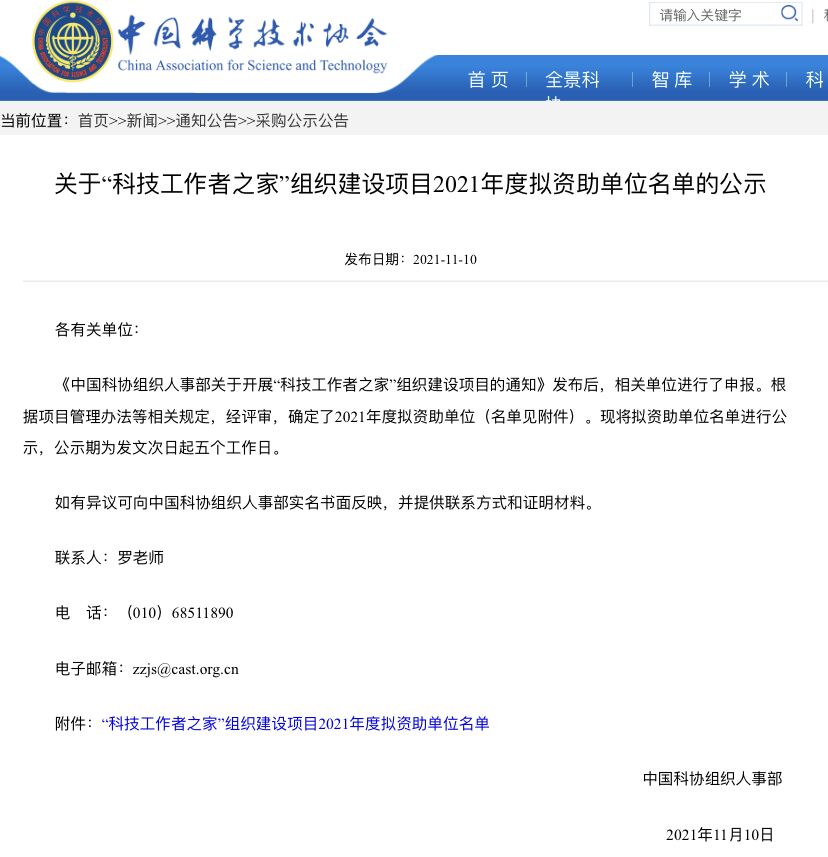 11月18日,我校成功立项中国科学技术协会“科技工作者之家”组织建设项目,成为2021年度全国唯一获得立项的高职院校。