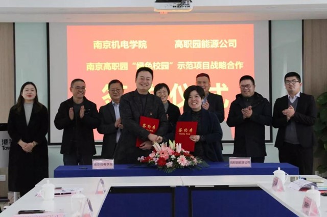 12月9日,我校与南京高职园能源科技有限公司(下称:高职园能源公司)在高淳港华签署战略合作协议,双方宣布将通过整合资源和发挥各自优势,建立长期项目合作关系,结成战略联盟。双方的合作涵盖智慧宿舍生活、智慧零碳光伏、智慧节能减碳、校企协同共育、产学研联盟共建等五个领域,根据协议,双方将共同推进“高职园零碳智慧园区项目”建设,加快“开元绿色校园项目”的研究与落实,力求打造国内首屈一指的高水平“绿色校园”示范项目,全力实现双方在各个领域的合作共赢局面,助力国家3060双碳目标的实现。我校党委书记、院长周庆礼,党委委员、副院长孔德丽,党委委员、工会主席、建设办主任姜振宇以及南京高职园、港华燃气公司、南高园能源公司领导一同出席了签约仪式。