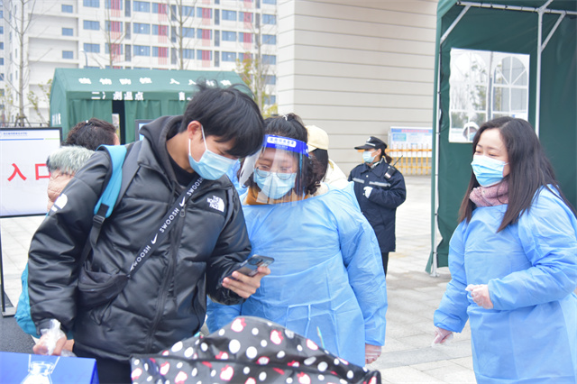 返校当天学校各部门工作人员分工协作、密切配合,做好学生返校报到现场周边的秩序维护和身份核验、交通管制引导、行李消杀等工作,为学生安全平稳有序返校保驾护航。