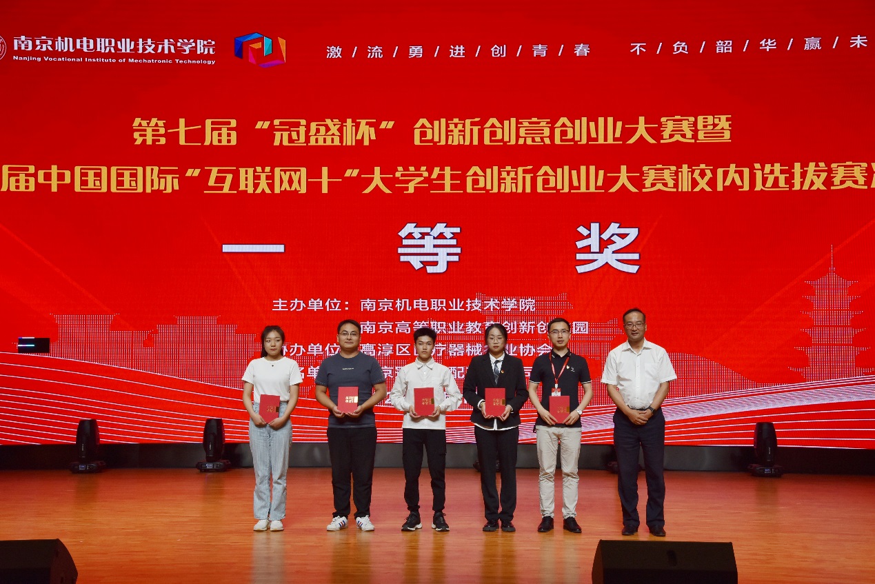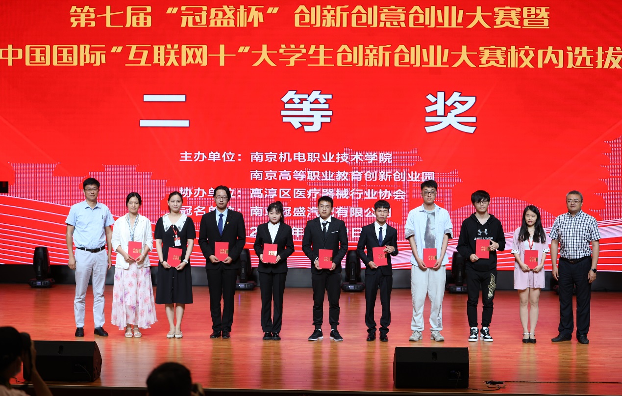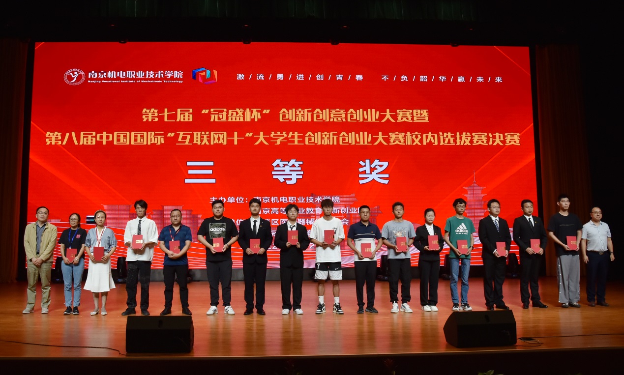 在颁奖仪式上,学校副院长刁爱军做总结发言。刁爱军带领观众回顾了整段赛程, “三创大赛”对学校人才培养,师生跨学科交流,综合能力提升等方面发挥着积极的推动作用。他希望学校师生在新时代创新创意创业浪潮中辟波斩浪、扬帆奋进,早日成为“创新达人”“创意精英”“创业大咖”。南京高职园主任汪春荣宣读了本届大赛现场决赛的评审结果。最终,《桌面级辅助机械臂》等5项作品获一等奖,《 “防患于未然”的无人机》《画化高淳话》等10项作品获二等奖,《 宿舍平移床上电脑桌》《文锦--校园文创》等15项作品获三等奖,《“凉山好汉”乡村支教梦”》等4项作品获单项奖。