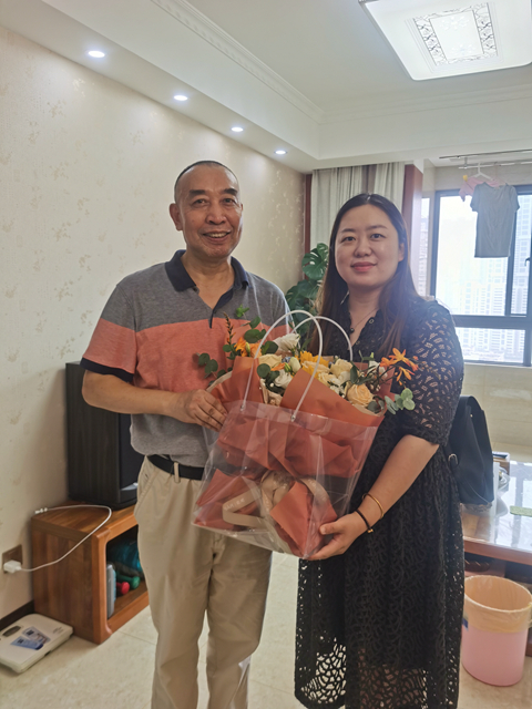 在第38个教师节来临之际,8月27日,学校党委委员、工会主席姜振宇,工会副主席张清松一行走访慰问了本年度荣休的教职工。