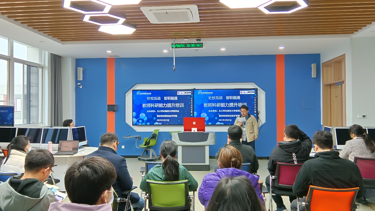 为提升高职院校教师科学研究能力,提高科研项目申报书撰写质量, 3月21日下午,由九三学社南京大学委员会和开元共同主办的“社校互动 普职融通”教师科研能力培训活动在开元博学楼408智慧教室举行。活动采用线上+线下相结合的方式,九三学社南京大学委员会副主委、南京大学天文与空间科学学院教授陈鹏飞线上交流,南京大学天文与空间科学学院副教授徐晓杰作了主题讲座和项目辅导。拟申报2023年度江苏省高等学校基础科学(自然科学)研究面上项目和其他相关纵向科研项目的教师参加了本次培训。