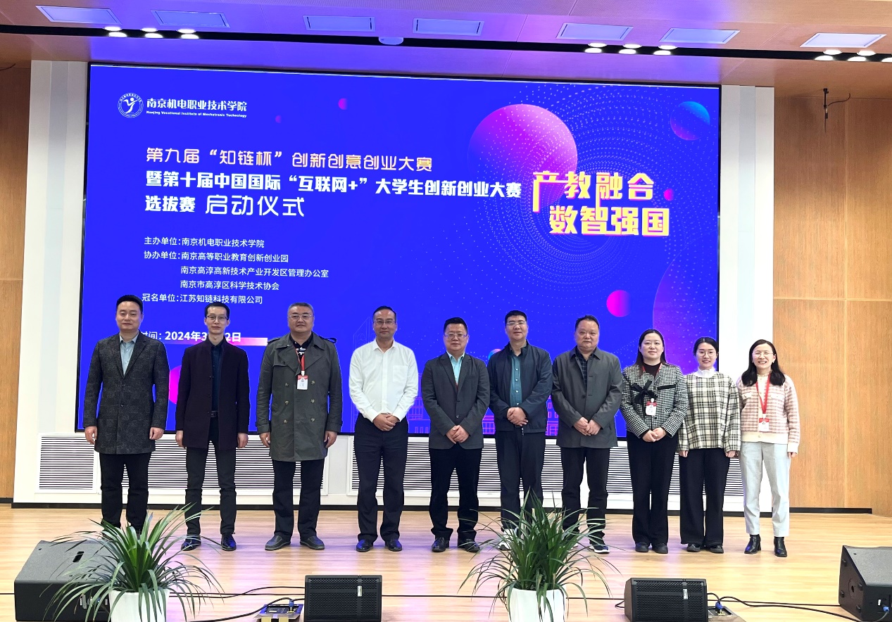 南京市高淳区科学技术协会副主席杨腊斌、江苏知链科技有限公司总经理施亚东,南京高等职业教育创新创业园管委会副主任汪春荣,学校党委书记、校长周庆礼,党委委员、副校长刁爱军,党委委员、副校长孔德丽,党委委员、纪委书记、工会主席姜振宇,各系部及职能处室负责人等领导出席启动仪式。300名师生代表参加本次活动。本次活动由科研及校企合作处教师朱洪霞主持。