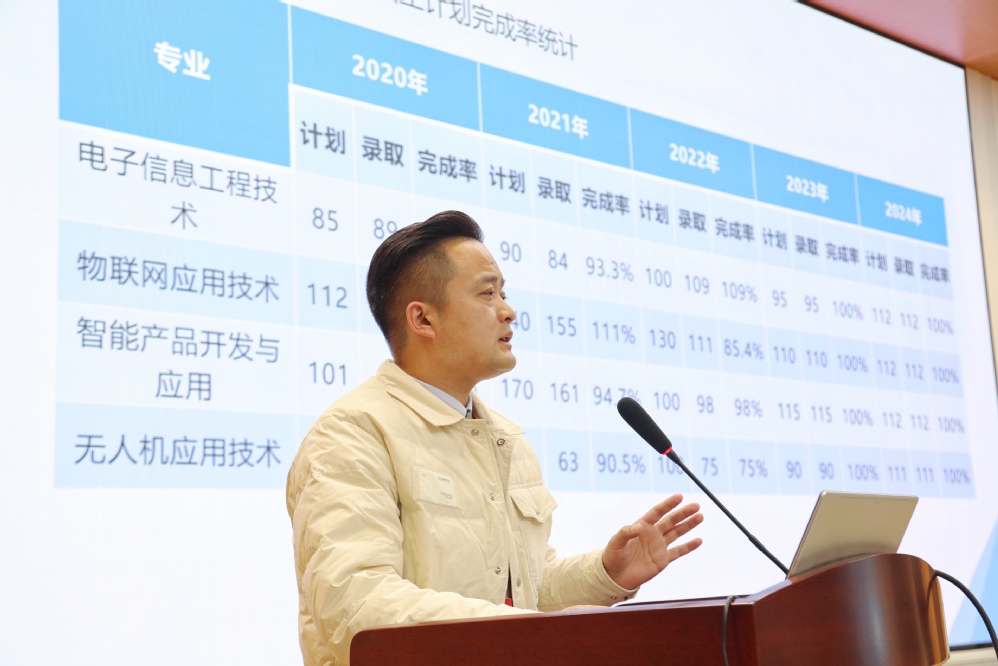 学生工作处处长助理殷凯,从招生计划的制定与执行、招生宣传、录取生源质量、就业工作落实等方面,用详细的数据对学校招生—培养—就业的整体情况进行分析,精准地找出在工作过程中存在的问题并提出了2025年工作的思路和建议。