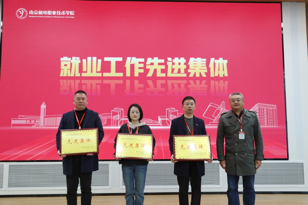 党委委员、纪委书记、工会主席姜振宇为获得“就业工作先进个人”的三位老师颁奖。