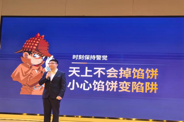 区“十佳”获得者反诈“侦探团”徐子祥、杨夏瑞、周恒在颁奖仪式上做了“警惕诈骗陷阱,守护财产安全”为主题的宣讲。