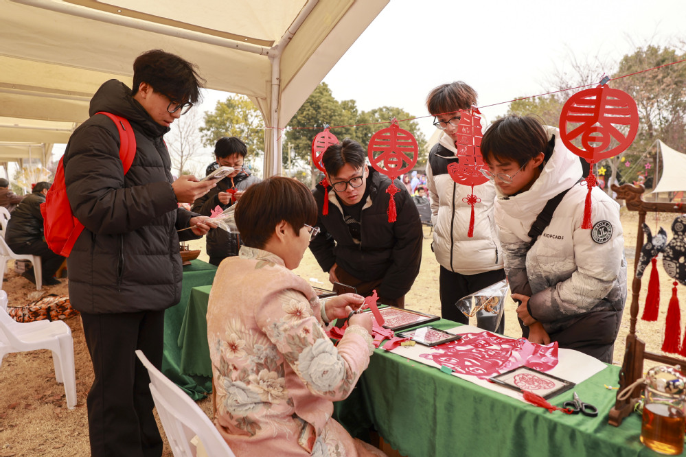 现场特色非遗展演,吸引了我校师生和当地群众共同参与,当地非遗传承人现场展示剪纸、锡器雕刻、糖画等传统技艺。同学们与非遗传承人互动,亲手体验非遗技艺,感受传统工艺的魅力。