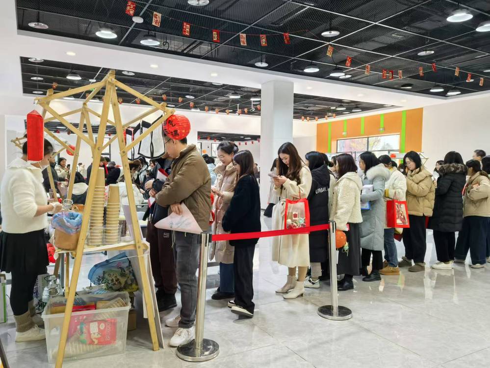 活动现场,两大主题区域交相辉映,各具千秋。传统文化区内,罐罐奶茶摊位前人头攒动,老师们手捧香气四溢的奶茶,感受民族风味与茶香的完美融合,在品味中开启了一段独特的文化之旅。年画拓印区,体验者热情高涨,亲手将墨汁均匀涂抹于刻板上,再小心翼翼地覆盖纸张、按压成型,一幅幅色彩绚丽、图案精美的年画应运而生,传统工艺在校园内得到了生动传承,同时也唤醒了大家对年俗文化的温馨记忆。剪纸艺术区同样人声鼎沸,在专业人员的悉心指导下,老师们纷纷拿起剪刀,在红纸上灵巧翻飞,纸屑飘落间,一个个“福”字、一幅幅生肖图案便跃然纸上,成为迎接新春的独特礼物。此外,制作纯手工的好运门挂与古法香囊也让老师们亲手编织出对新年的美好祈愿与祝福。