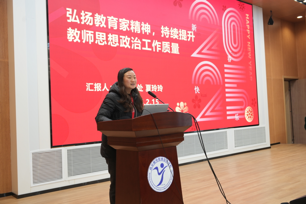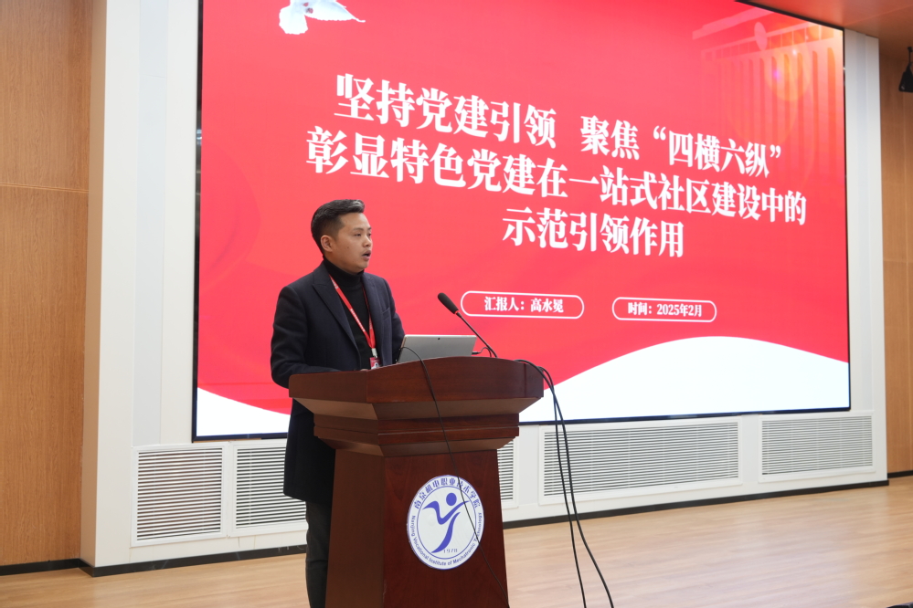 学校党委书记、校长周庆礼从“聚焦政治建设,强化理想信念教育;聚焦立德树人,创新思政工作方法;聚焦思想引领,铸牢意识形态阵地;聚焦顶层设计,绘就社区发展蓝图”四个方面对思想政治工作、一站式学生社区工作提出要求。他表示,全校上下要把思想政治工作摆到重要位置,切实加强组织领导和工作指导,形成党委统一领导、党政齐抓共管、职能部门组织协调、二级院系积极参与的工作格局,守牢意识形态阵地,深化社区内涵建设,构筑立德树人新生态新格局,为保证高等职业教育改革发展、实现中华民族伟大复兴的中国梦贡献力量!