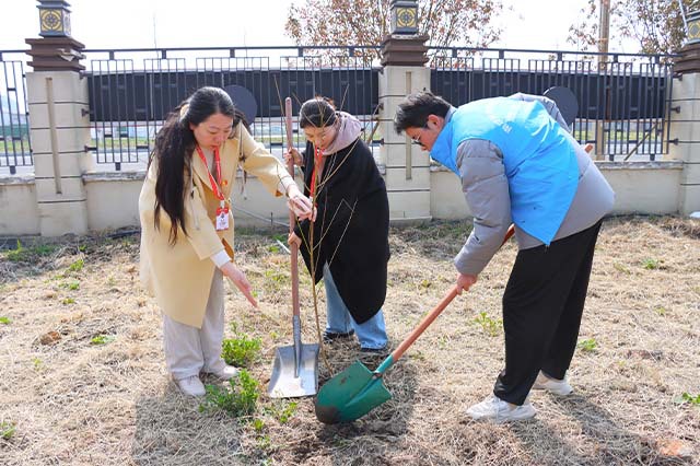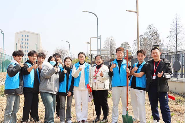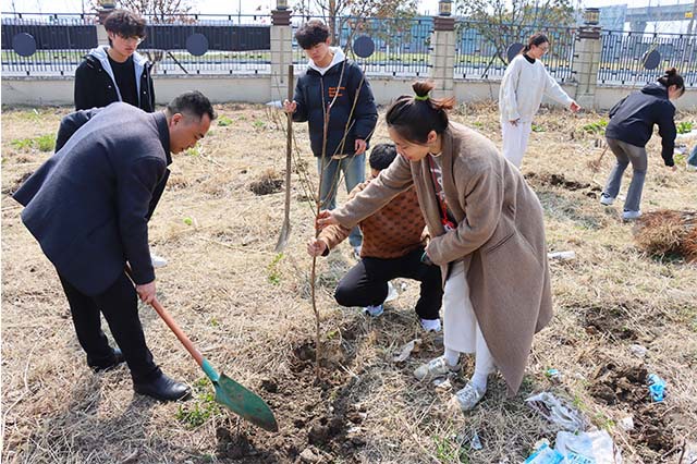 信息工程系党支部与机械工程系党支部师生齐聚学校网球场旁空地,开展“植”此青绿,共“树”未来——“雷锋月”第47个植树节活动。活动旨在响应国家绿色发展理念,增强师生环保意识,将雷锋精神融入实践。活动现场,植树师傅指导示范挖坑标准,师生们认真学习后迅速行动。两系师生分成10个小组,老师们负责丈量间距确定树苗种植位置,同学们挥动铁锹挖掘树坑,填土时踩实并浇水灌溉。活动中,同学们学会了植树技巧,感受到团队协作的力量,部分家庭困难学生也踊跃参与,增强了自信心和责任感。此次活动共种植100棵树苗,这些树苗未来将美化校园环境,见证师生的辛勤付出。活动不仅美化了校园,还搭建了联系师生沟通的桥梁,深化了交流合作,让雷锋精神在环保行动中得以传承和发扬,为校园文化建设注入新活力。