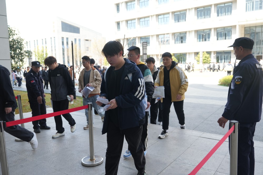考场入口处,考生秩序井然,依次排队进入考场。考场内秩序井然,考务人员严格按程序组织实施考务工作,考生们沉着冷静、积极应试。考试过程中,校领导实地查看考场、考务办公室等场所,确保严格按照相关规定要求组织考试。